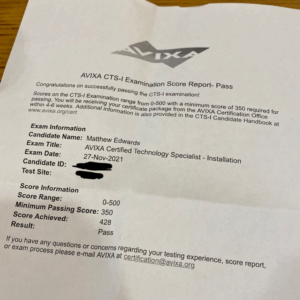 - 某高校教師利用我們的 AVIXA 考試代考服務,成功通過 CTS-I 安裝專家認證。